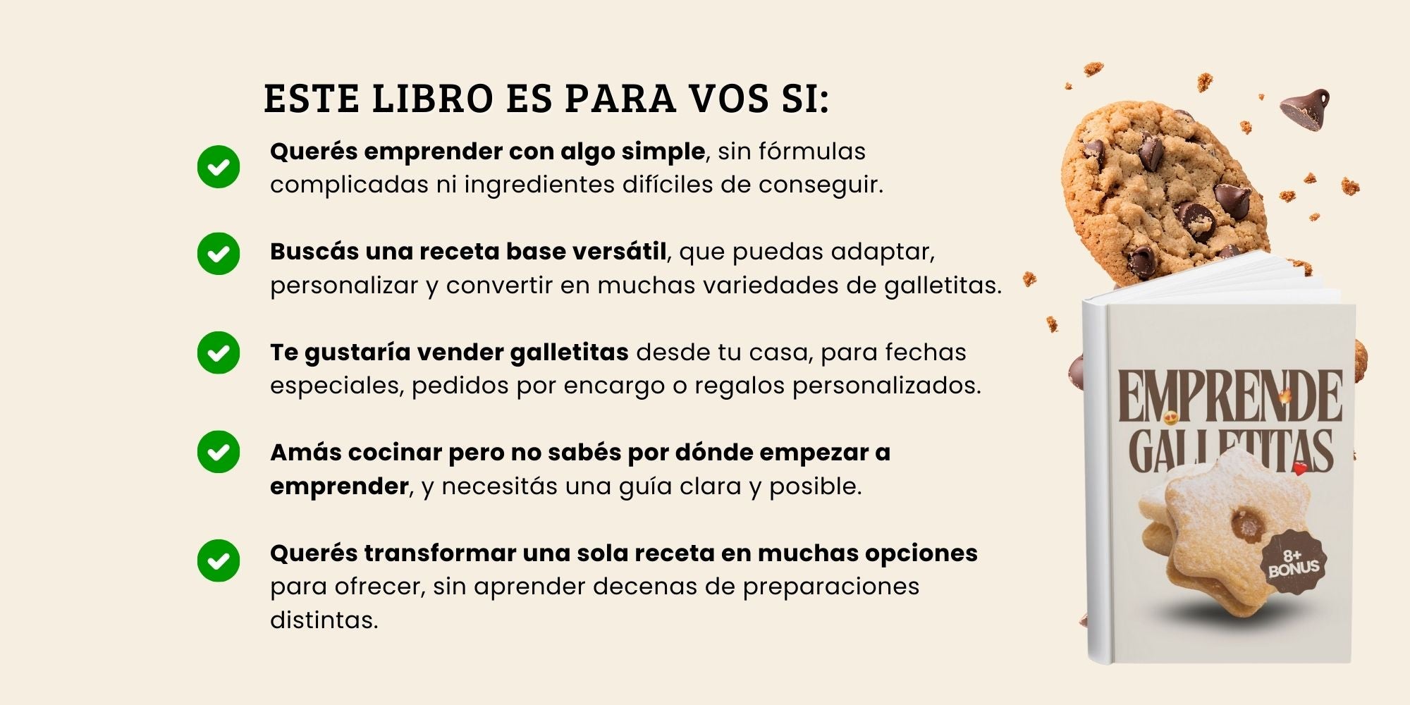 Sí. El ebook fue creado especialmente para emprender. Incluye recetas probadas, tips de rendimiento y recomendaciones para que puedas vender tus galletitas de manteca de forma rentable, ya sea por pedido, en ferias o como regalos personalizados.